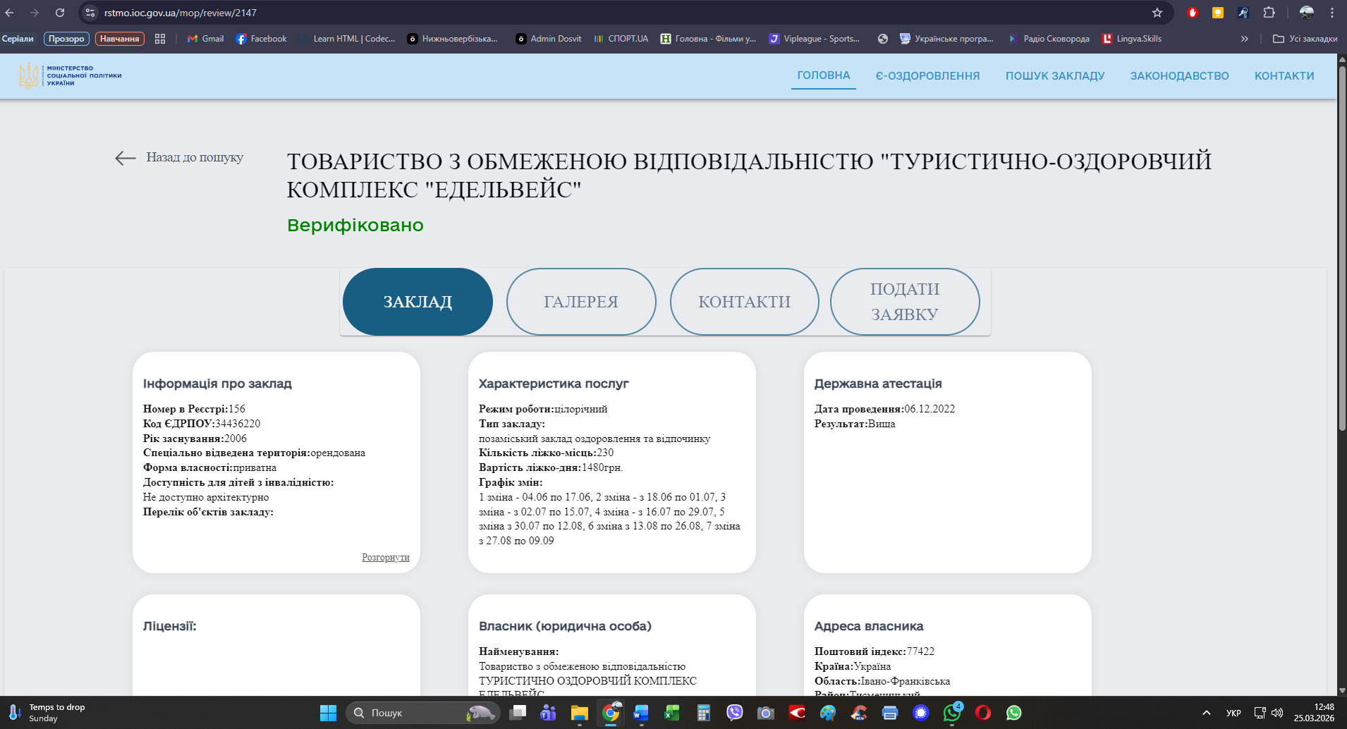 https://www.edelvejs.com.ua/ ТУРИСТИЧНО-ОЗДОРОВЧИЙ КОМПЛЕКС "ЕДЕЛЬВЕЙС": Ціна зміни у червні-липні 1570,00 грн. (скріншот додається), на сайті Міністерства соціальної політики України, у розділі «Є-оздоровлення-державна програма оздоровлення дітей» https://rstmo.ioc.gov.ua/mop/review/2147 вартість ліжко-дня встановлена 1480,00 (скріншот додається).