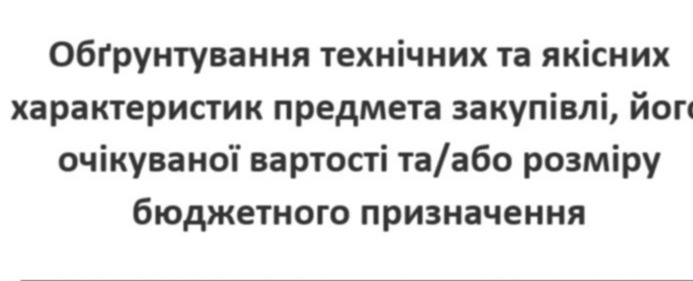 Обґрунтування технічних та якісних характеристик предмета закупівлі: