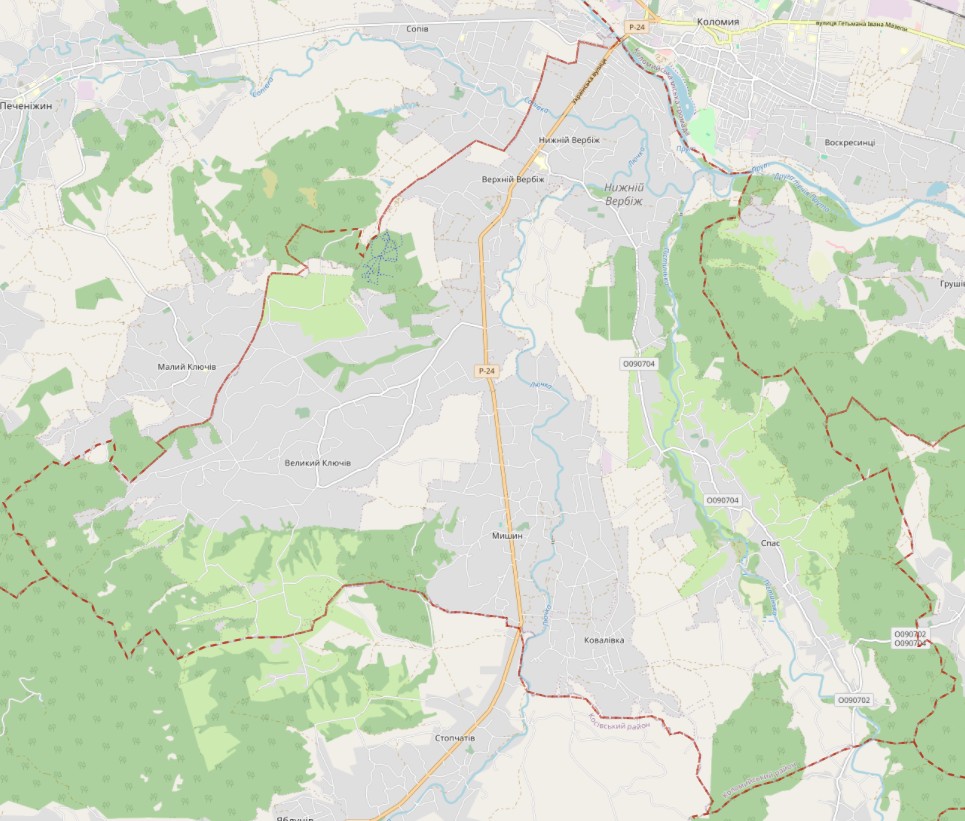 Площа території - 97,57 км2 села Нижній Вербіж, Верхній Вербіж, Мишин, Ковалівка, Спас, Великий Ключів Коломийського району Івано-Франківської області |