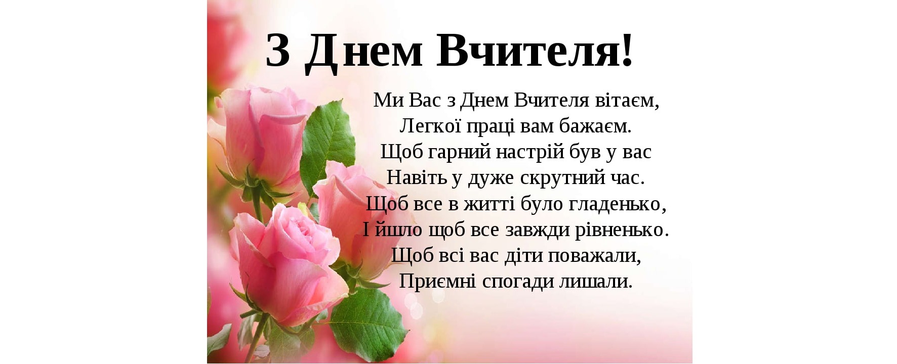 Бути вчителем – нелегко. Це відповідальність, організованість, багатозадачність і гнучкість. Це любов до дітей і доброта. У цей святковий день ми бажаємо вам злагоди в душі та успіхів на роботі.