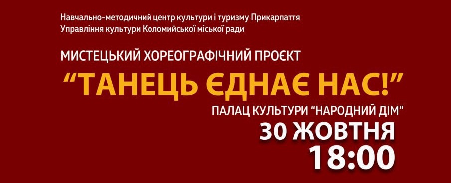 30 жовтня 2021 р. о 18:00 В Палаці Культури "Народний дім м. Коломия Відбудеться Мистецький проєкт "Танець єднає нас!"