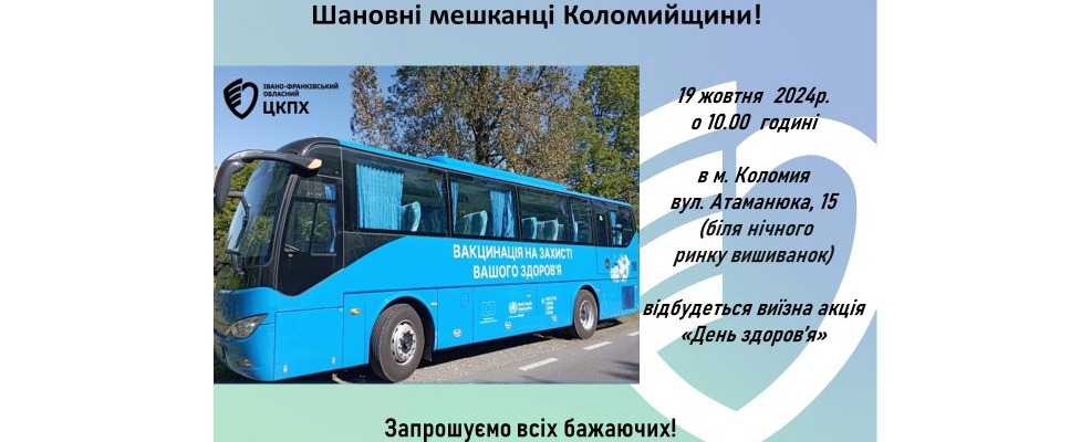 19 жовтня 2024 року за ініціативи голови обласної державної адміністрації Світлани Онищук та за підтримки генерального директора ДУ «Івано–Франківський ОЦКПХ МОЗ» Руслана Савчука у співпраці з КНП «Коломийська ЦРЛ Коломийської міської ради» відбудеться виїзна акція «День здоров'я».
