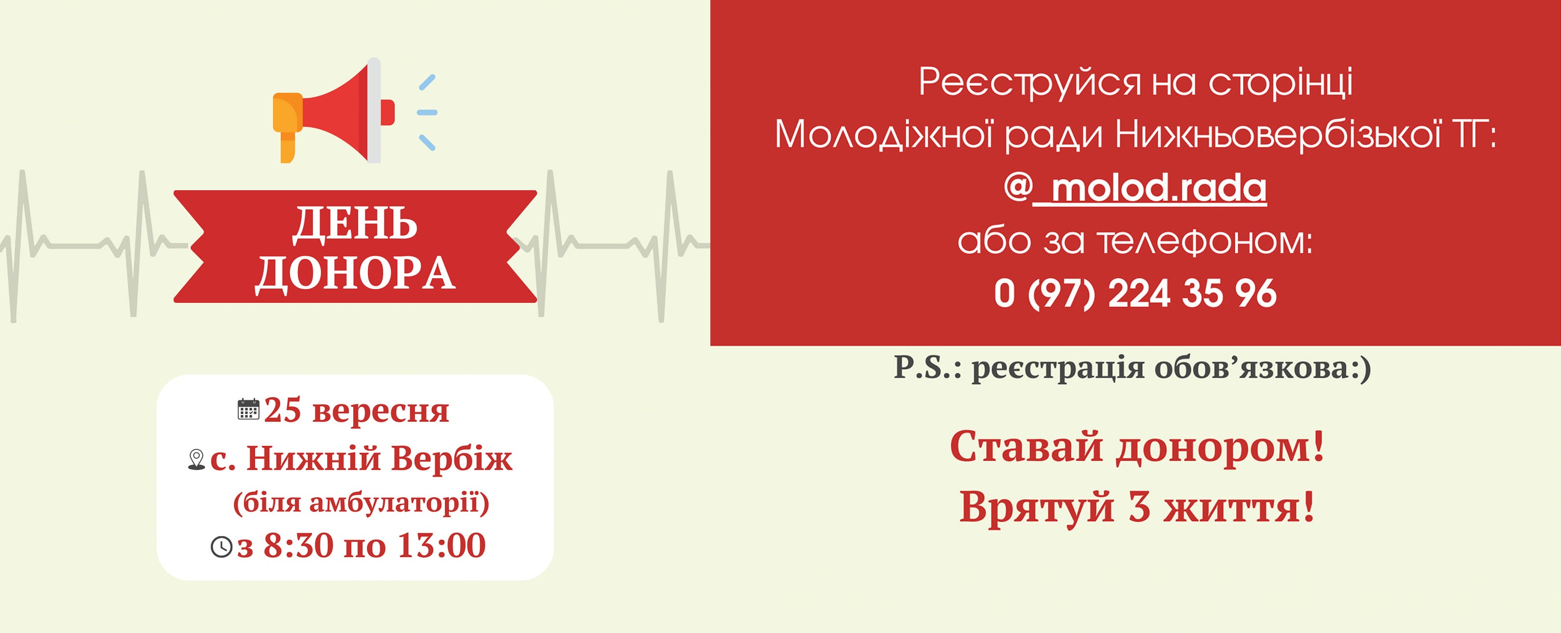 Молодіжна рада Нижньовербізької сільської ради спільно з КНП «Прикарпатський центр крові» 25 вересня організовує "День донора крові".