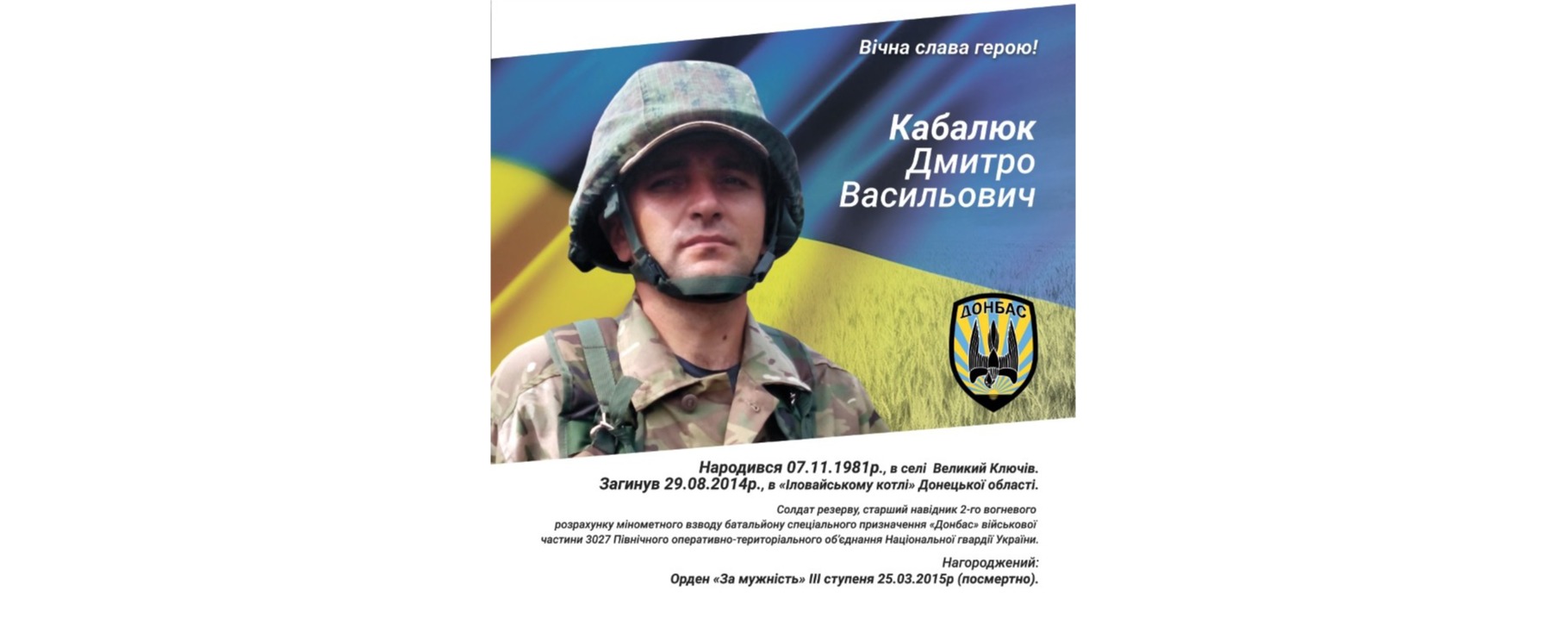 10 років з дати загибелі Кабалюка Дмитра в Іловайському котлі.