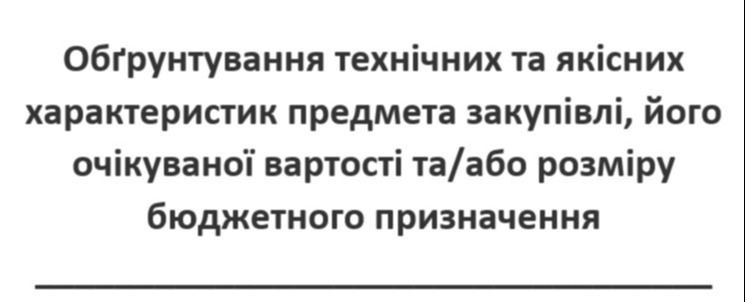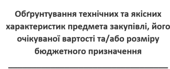 На виконання постанови КМУ від 11 жовтня 2016 р. № 710 "Про ефективне використання державних коштів" оприлюднюється обґрунтування технічних та якісних характеристик предмета закупівлі, його очікуваної вартості та/або розміру бюджетного призначення